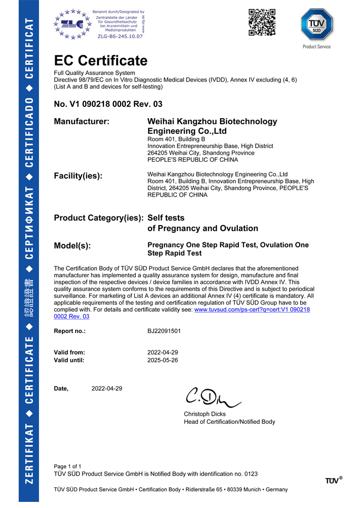 ? ? ?威??抵萆锕こ逃邢薰境闪⒂?013年,公司坐落于風景秀麗的海濱小城——威海市。康州生物是集研發、生產和銷售于一體的生物科技公司,與威海哈爾濱工業大學合作研發團隊,擁有先進的科研基地及生產基地。主要從事快速診斷檢測產品的研發、生產、銷售。產品涵蓋:生育檢測、藥物濫用檢測、農藥殘留檢測以及其他臨床診斷檢測等。公司自主研發生產得早早孕試紙,排卵檢測試紙,毒品檢測及疾病檢測等醫用產品,經過歐盟認證,產品質量穩定,值得信賴。